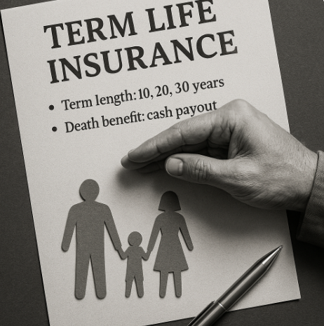 Term life insurance is a type of life insurance that provides coverage for a specific time period, typically ranging from 10 to 30 years. If the insured individual passes away during this "term," the policy pays a tax-free cash benefit (the "death benefit") to their designated beneficiaries.